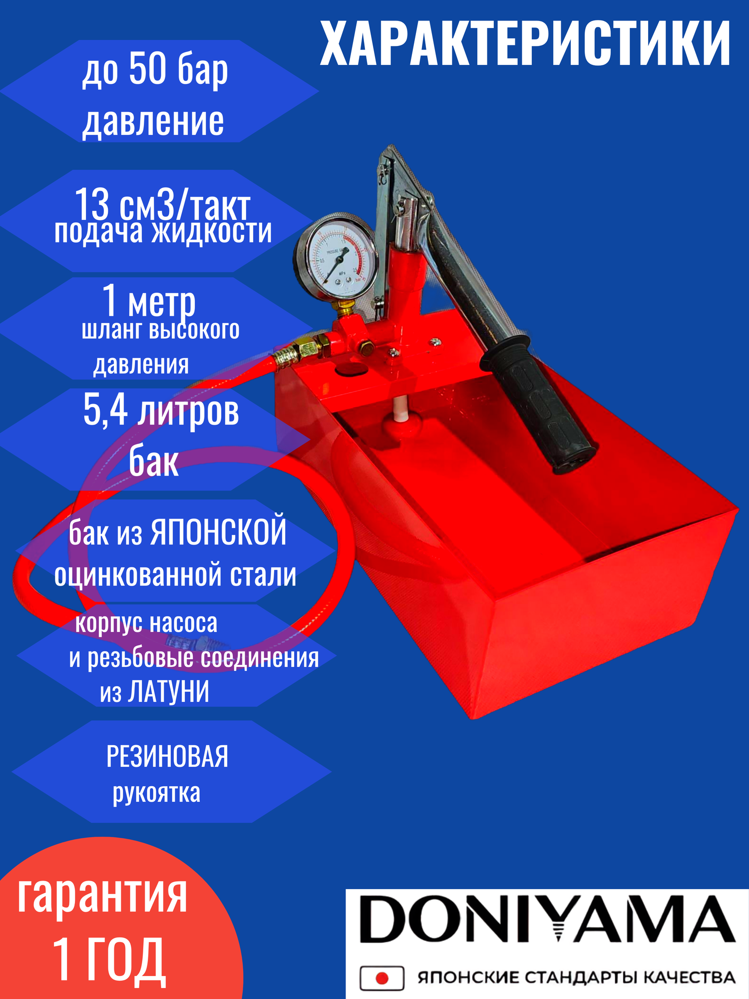 Опрессовщик DONIYAMA, для отопления, для воды, манометр, 50бар, 5.4л: сравнение цен, характеристики, фото, актуальное наличие и цены.