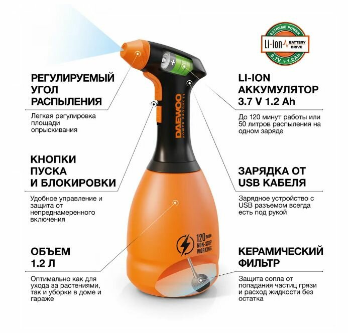 Опрыскиватель аккумуляторный Daewoo DSA 1.20 Li 1.2 л: сравнение цен, характеристики, фото, актуальное наличие и цены.