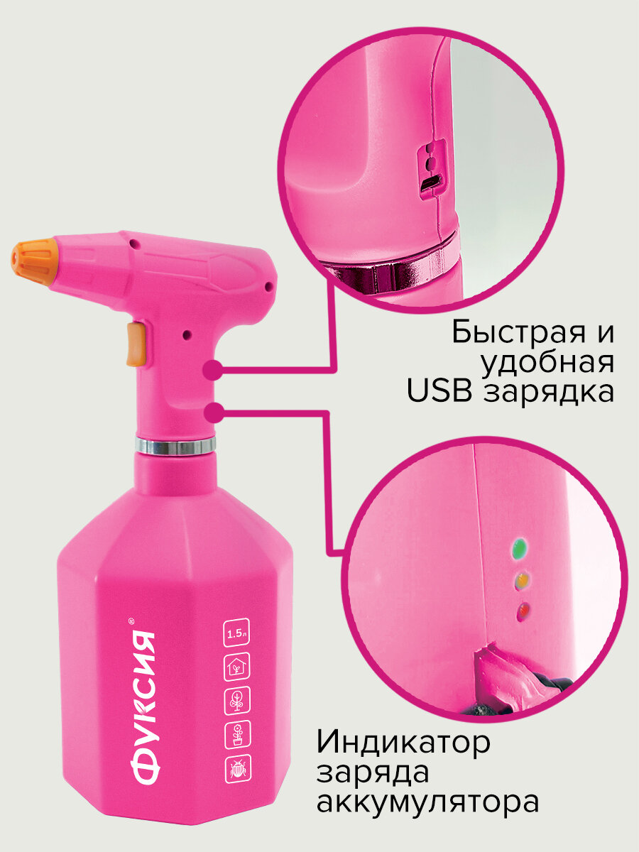Купить Опрыскиватель аккумуляторный для цветов 1,5 л, Фуксия с доставкой по всей России. Опрыскиватель аккумуляторный для цветов 1,5 л, Фуксия: сравнение цен, характеристики, фото, актуальное наличие и цены.