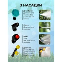 Опрыскиватель аккумуляторный - незаменимая бытовая техника для огорода, сада, фермы и дачи. Садовый распылитель применяется для мойки автомобилей, опрыскивания и полива деревьев, овощных культур, рассады, цветов, садовых растений водой. Изготовлен из качественных материалов и подойдет для работы с химикатами, удобрениями, гербицидами и пестицидами. Особенность этого опрыскивателя-отсутствие бака для жидкости. Распылять жидкость можно из любой ёмкости, аккумуляторное устройство встроено в ручке. Для большей функциональности пульверизатора длина телескопической трубки меняется и достигает до 110 см, длина шланга 8 м, что позволяет регулировать зону опрыскивания. Дальность разбрызгивания до 5 метров. Электро распрыскиватель обладает мощным аккумулятором Li-on 7.4 В на 2 А/ч, что обеспечивает до 3,5 часов активного полива. Распыление оросителем происходит без постоянного нажатия выключателя. Достаточно один раз нажать кнопку подачи воды. Электрический распылитель для воды имеет насадку 3 видов распыления: струя, сектор, душ. Садовый опрыскиватель для тех, кто хочет лёгкий, компактный, портативный и простой в использовании опрыскиватель. Безъемкостный опрыскиватель удобен в хранении, потому что не занимает много место, удобно перемещать возить на дачу или на огород. Опрыскиватель садовый аккумуляторный отлично заменяет опрыскиватель помповый. Распылитель для воды функционирует от Li-ion батареи 7.4 В, 2.4 А*ч. Аккумаляторный пульверизатор садовый для растений выполнен из качественных материалов, которые не боятся агрессивных сред, поэтому можно осуществлять опрыскивание любыми химикатами.