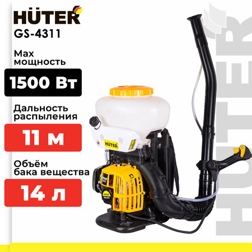 Опрыскиватель бензиновый Huter GS-4311 с баком на 14 л предназначен для масштабных работ по распылению смеси воздуха и любого жидкого химиката, поможет быстро обработать сад, двор, сквер, фермерское угодье.