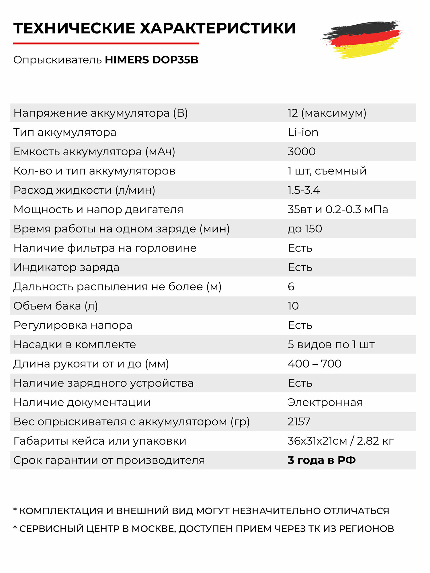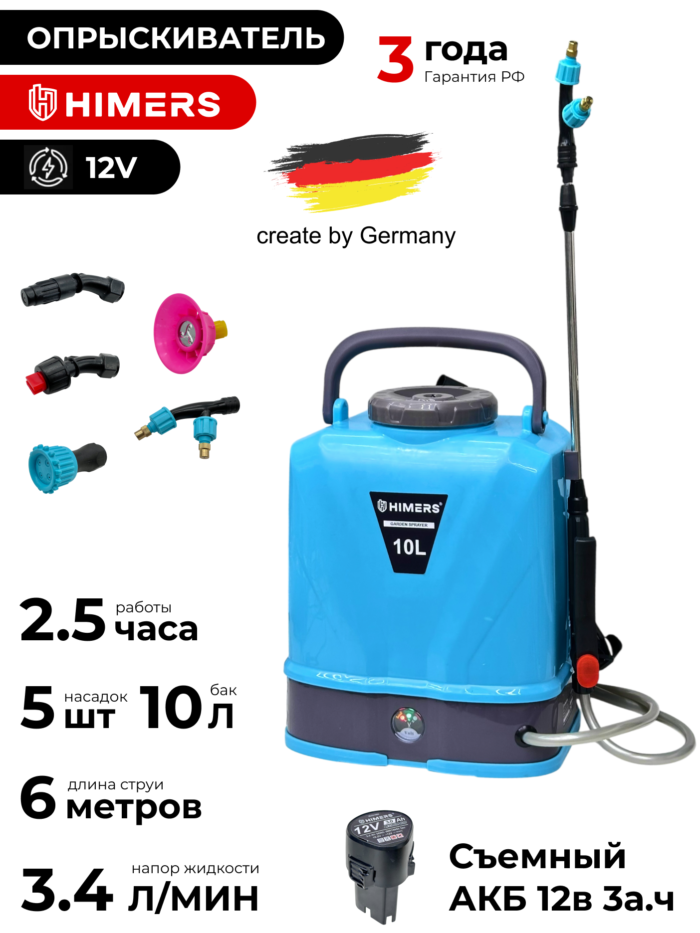 Опрыскиватель HIMERS DOP35B аккумуляторный 12V, 1 АКБ 3 А. ч, 6 метров, 5 насадок, 10 литров (распылитель): сравнение цен, характеристики, фото, актуальное наличие и цены.