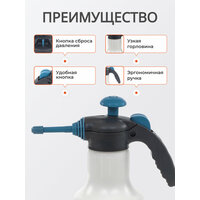 Ручной способ работы позволяет точно контролировать направление подачи жидкости. Опрыскиватель прекрасно подходит для ухода за садом и огородом, а так же за клумбой, рассадой в домашних условиях или для решения бытовых задач внутри дома. Применять пульвелизатор можно и в домашних условиях чистить стекла, использовать как распылитель жидкости для ремонта. Легкий корпус выполнен из высокопрочного пластика. На баке имеется мерная шкала, что способствует более точному смешиванию жидкостей.