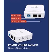 Стандарты: SC/UPC одномодовое одиночное волокно GPON: FSAN G.984.2 Class B+, EPON:1000BASE-PX20+ symmetric Скорость: GPON: 2,488 Гбит/с / 1,244 Гбит/с downstream/upstream EPON: 1,25 Гбит/с downstream/upstream Длина волны: Tx: 1310нм, Rx: 1490нм Чувствительность приемника: GPON: -28дБм, EPON: -27дБм Насыщенность оптической мощности: GPON: -8дБм, EPON: -3дБм Мощность передатчика Tx: GPON:0.5~5дБм, EPON: 0~4дБм Ethernet-интерфейс: 1*10/100/1000M автосогласование Full/half duplex mode Разъем RJ45 Автоматический MDI/MDI-X Расстояние: 20 км Источник питания: 12V DC Режим управления: OMCI, OAM, WEB, Telnet Функция управления: Мониторинг состояния, управление конфигурацией, управление аварийными сигналами, управление логами Потребляемая мощность: <3W, 12V/0.5A Размер: 78мм*78мм*23.5мм (Д*Ш*В) Масса: ~62.7 г Рабочая температура: 0~40 ℃ Условия хранения: 10~90% (без конденсации)