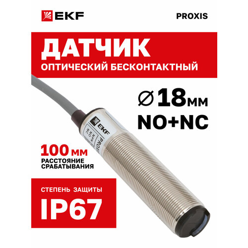 Оптический бесконтактный датчик PROXIS-3D-18-10-N-NO+NC-2 - d 18 мм неутапливаемый NPN, NO+NC, диффузный, срабатывание 100 мм, вывод 2 м