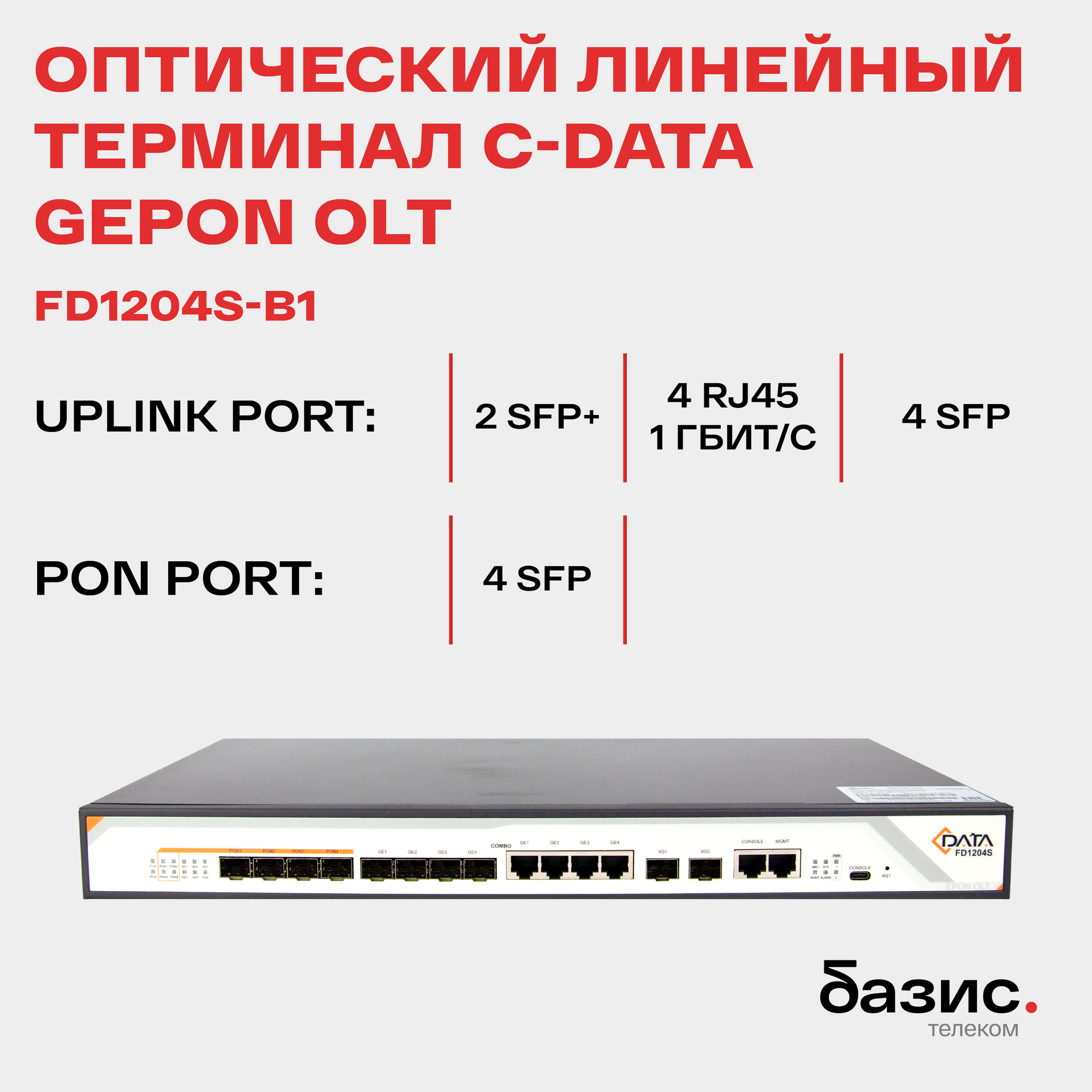 Оптический линейный терминал OLT C-DATA FD1204S-B1, 4 порта GEPON (SFP), 4хSFP, 4хRJ-45, 2хSFP+, 2 БП АC: сравнение цен, характеристики, фото, актуальное наличие и цены.