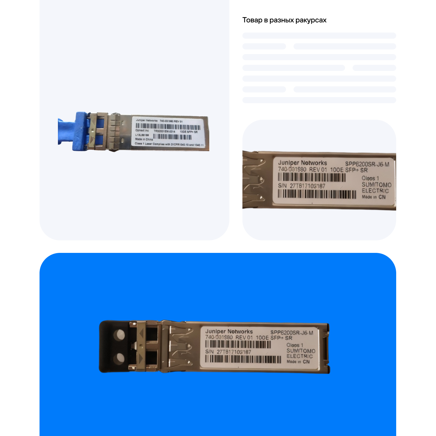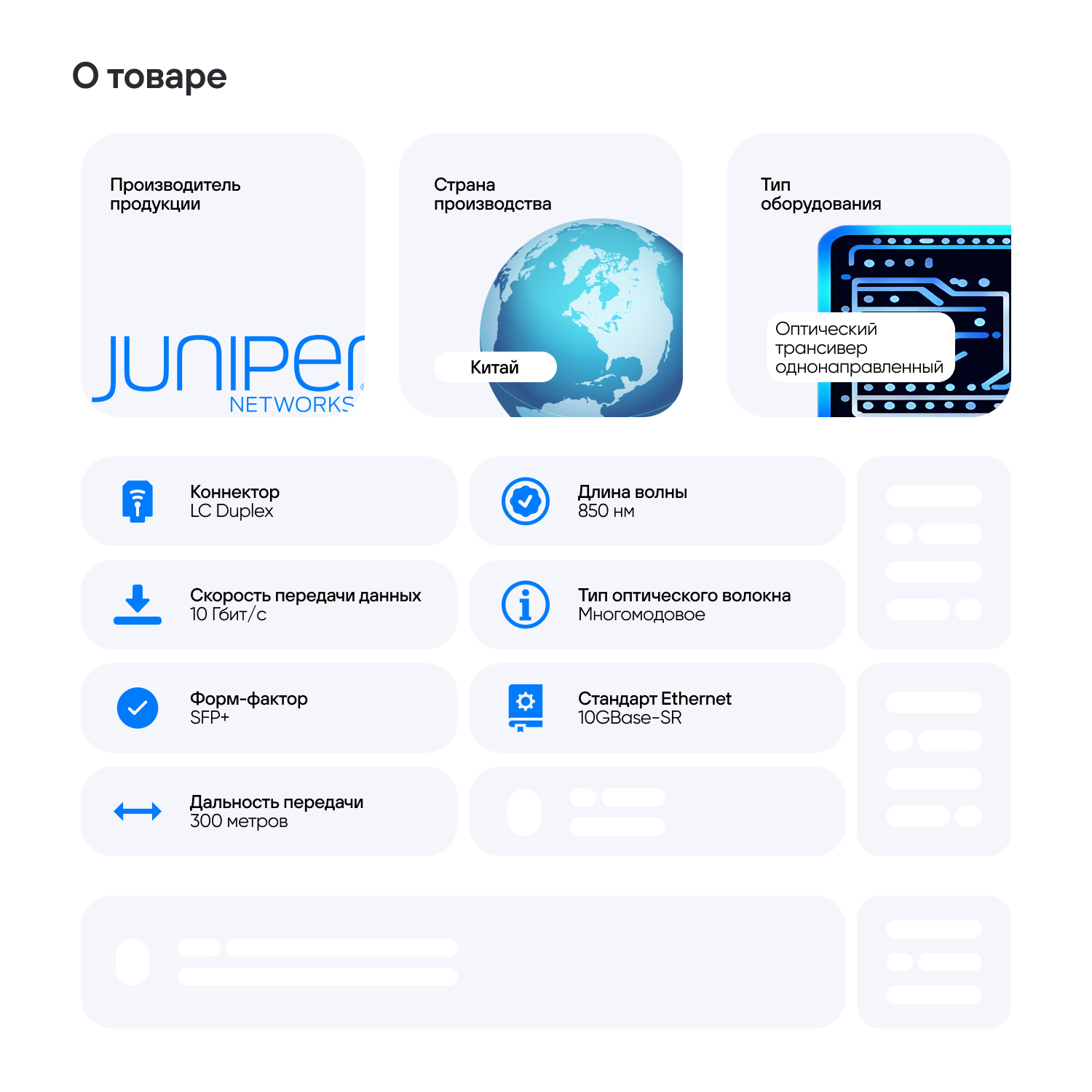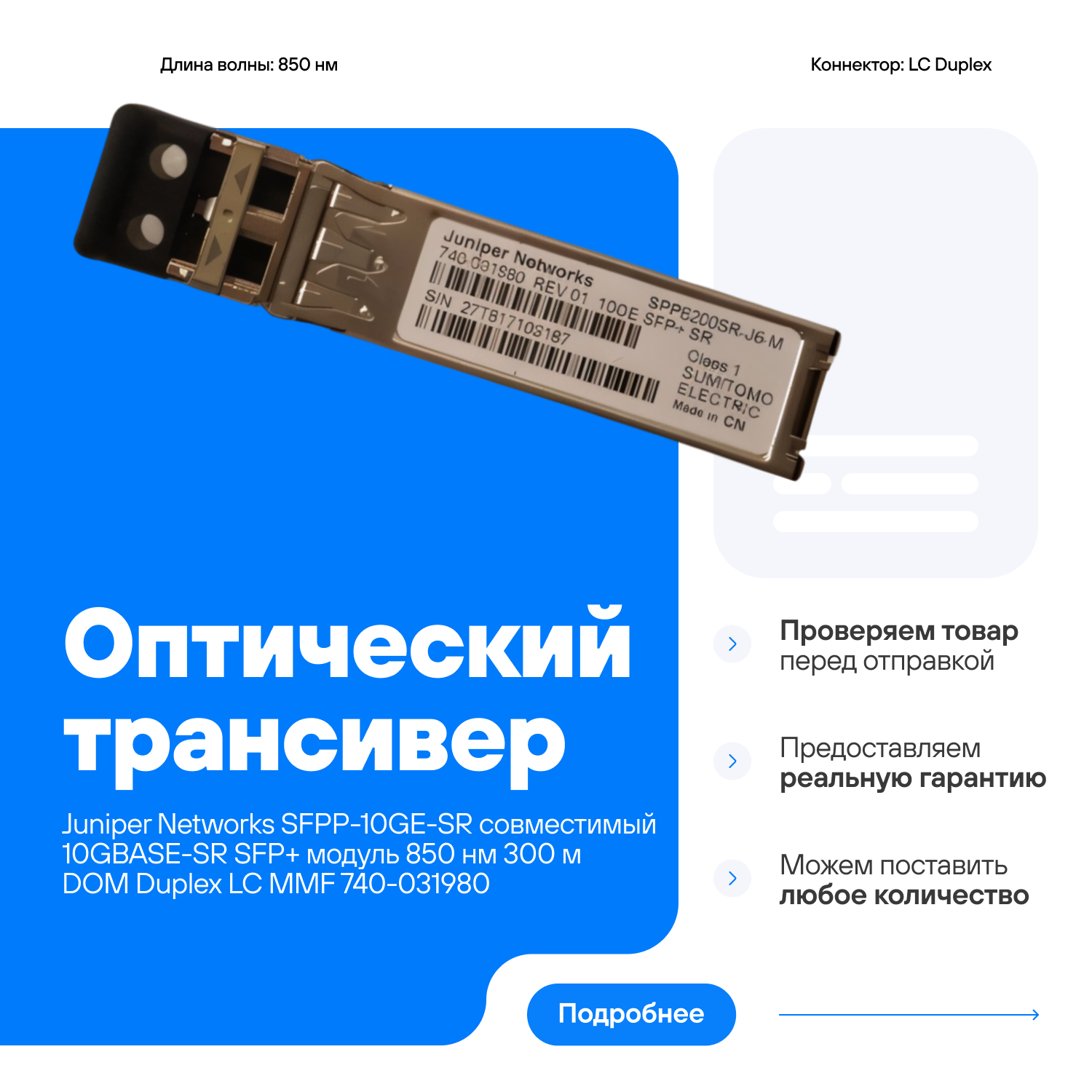 Оптический модуль Juniper Networks SFPP-10GE-SR совместимый 10GBASE-SR SFP+ модуль 850 нм 300 м DOM Duplex LC MMF 740-031980 AS93S9F FTLX8571D3ВNL-J1: сравнение цен, характеристики, фото, актуальное наличие и цены.
