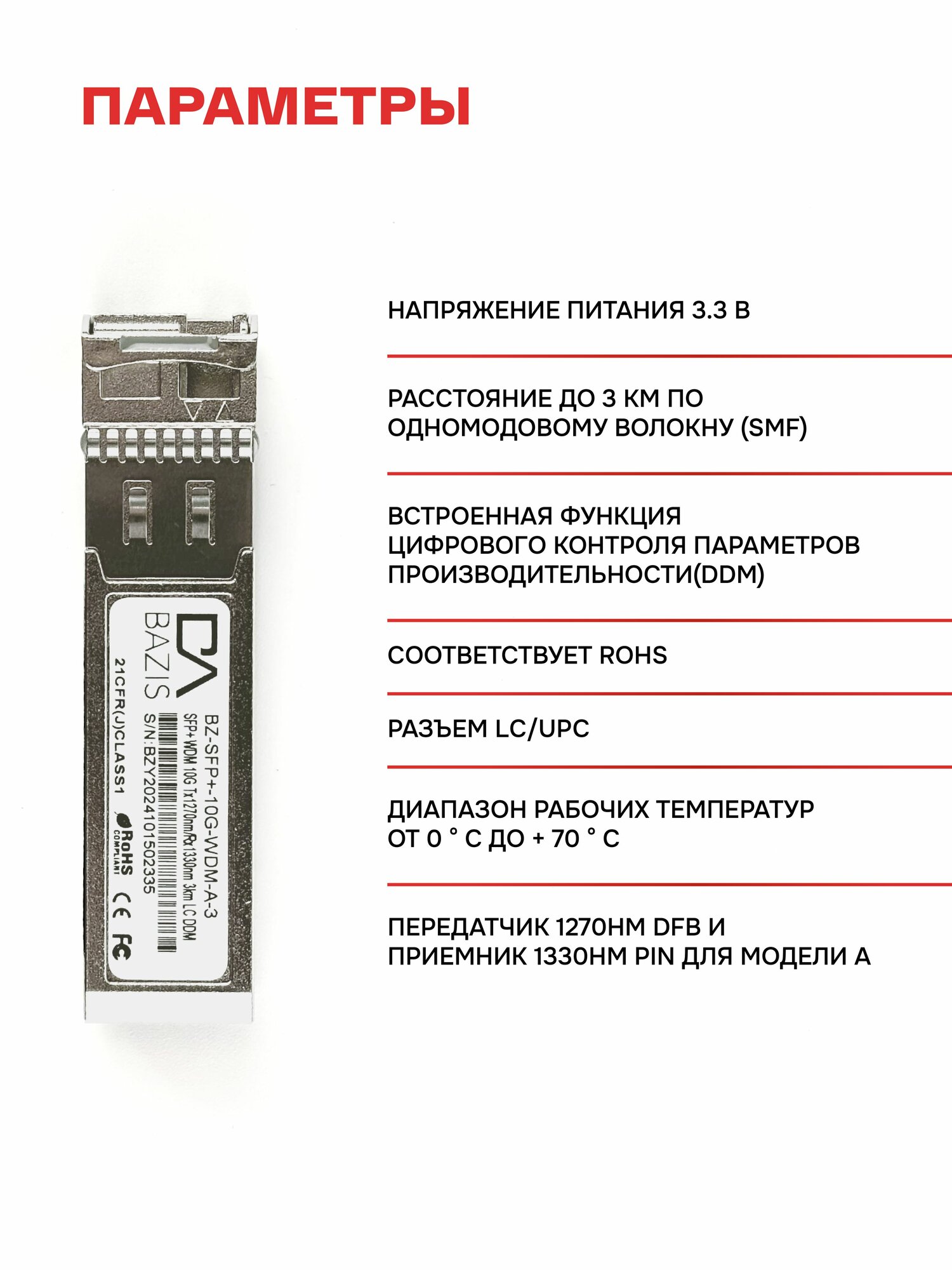 Оптический модуль SFP+, скорость передачи: 10 Гбит/с, разъем LC, длина волны 1270/1330 нм, расстояние передачи 3км: сравнение цен, характеристики, фото, актуальное наличие и цены.