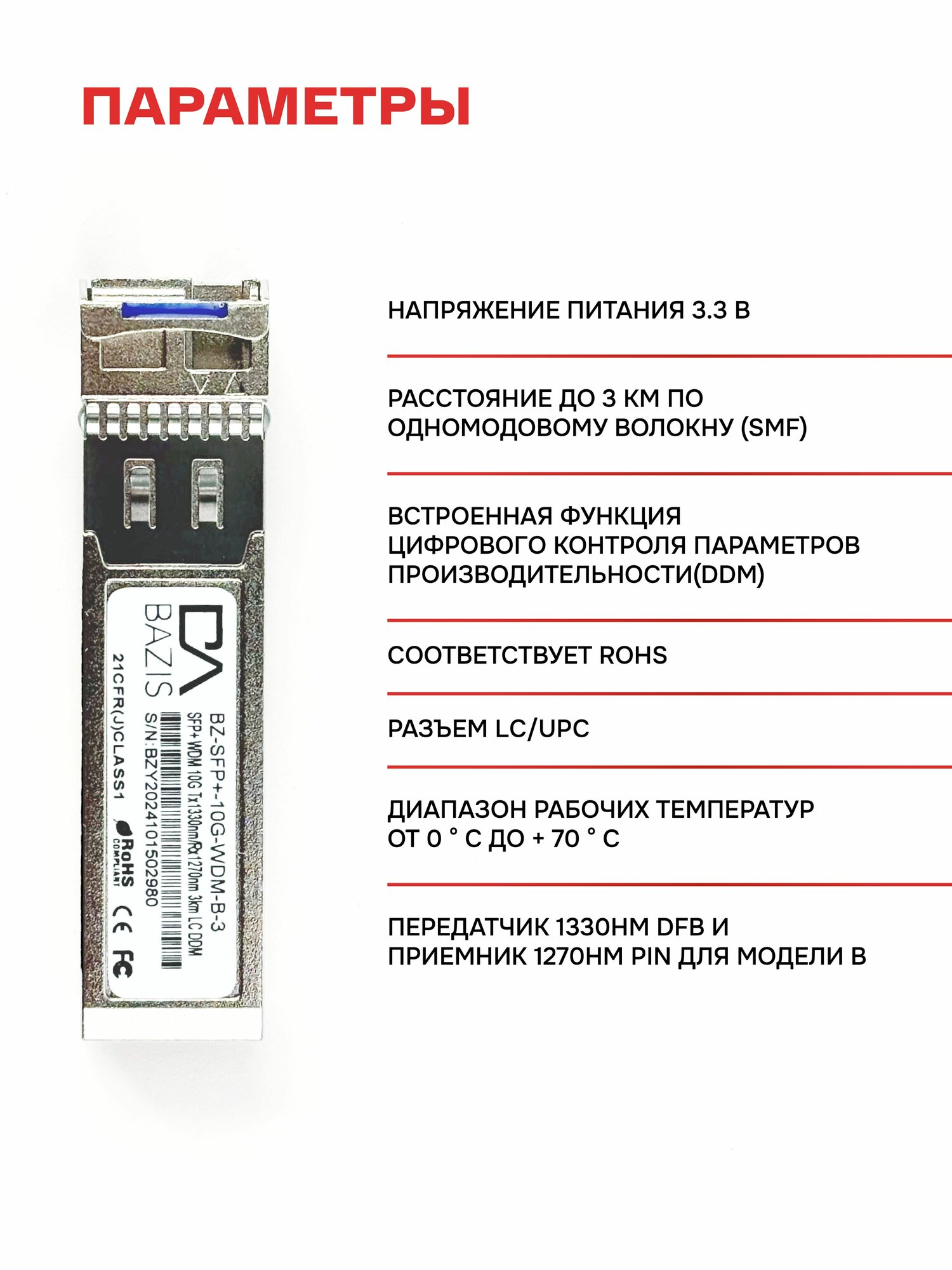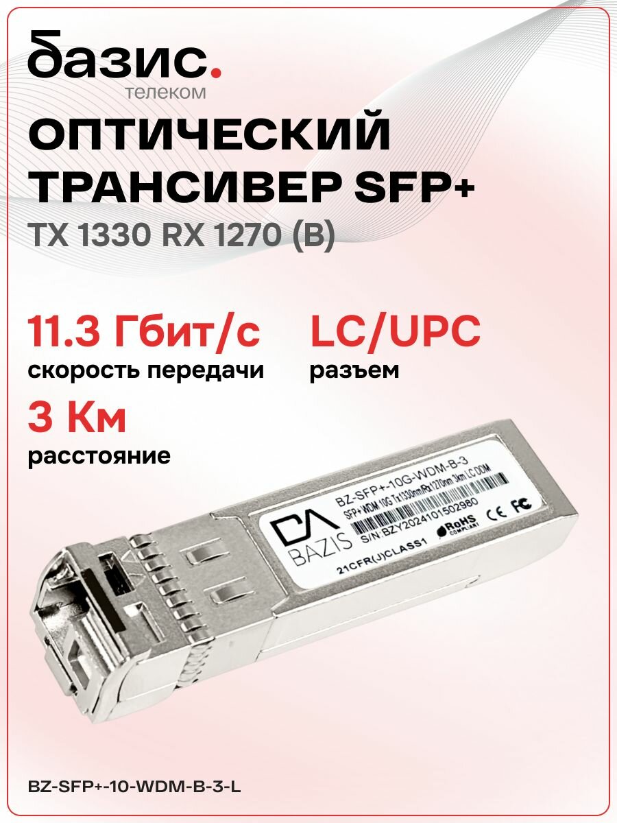 Оптический модуль SFP+, скорость передачи: 10 Гбит/с, разъем LC, длина волны 1330/1270 нм, расстояние передачи 3км: сравнение цен, характеристики, фото, актуальное наличие и цены.