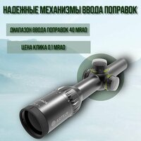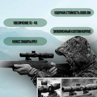 влагозащита, газонаполненный, защита от пыли, откидная крышка, отстройка параллакса, подсветка, подстройка диоптрий, прицел закрытого типа, прицельная сетка, ударопрочный корпус, функция zoom, элементы питания в комплекте