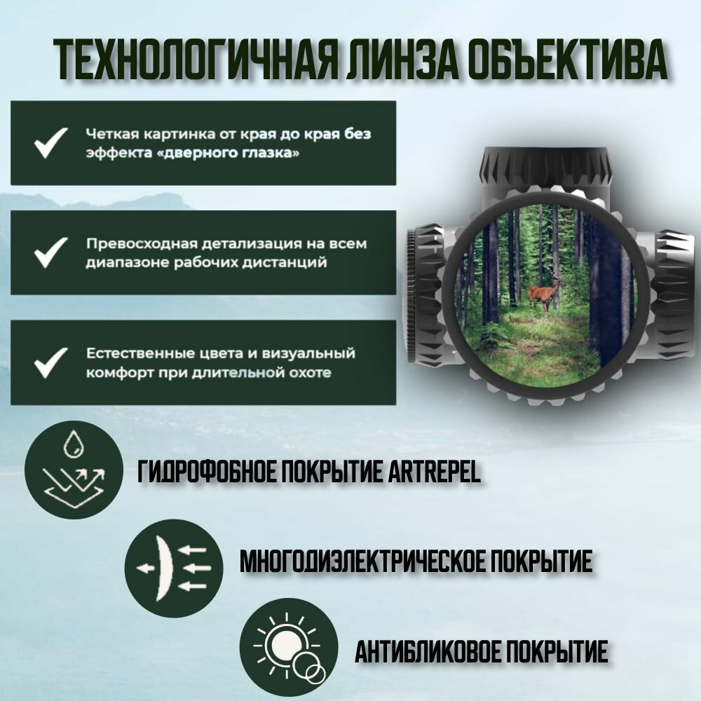 - Антибликовое покрытие снижает появление бликов при наблюдении в яркой солнечной погоде. Покрытие позволяет избежать неприятных отражений и предоставляет четкое и ясное изображение.