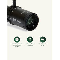 влагозащита, газонаполненный, защита от пыли, откидная крышка, отстройка параллакса, подсветка, подстройка диоптрий, прицел закрытого типа, прицельная сетка, ударопрочный корпус, функция zoom, элементы питания в комплекте