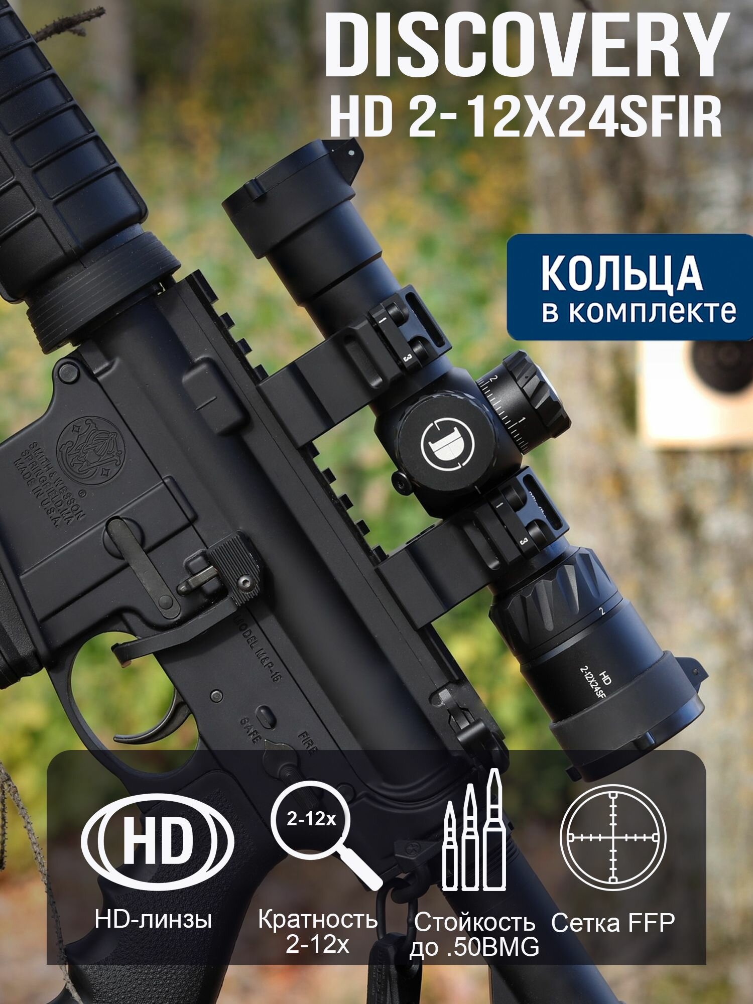 Оптический прицел Discovery HD 2-12X24SFIR от популярного бренда. Discovery - известная компания, которая специализируется в области охоты, в том числе на производстве высококачественной оптической техники. Компания Дискавери успела завоевать авторитет на рынке за счет многолетнего опыта своих специалистов и применения новейших технологий. Оптический прицел Discovery HD 2 12x24 SFIR представляет собой высокотехнологичное устройство, разработанное для обеспечения максимальной точности и надежности при стрельбе. Этот прицел идеально подходит для охотников и спортивных стрелков, стремящихся к превосходному качеству изображения и удобству использования в любых условиях. Модель прицела подходит как для огнестрельного, так и для пневматического оружия. Основные характеристики: