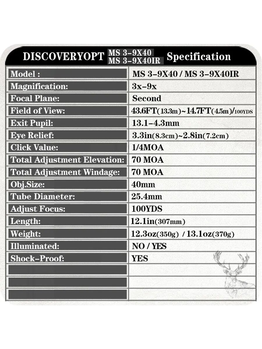 Оптический прицел DISCOVERY MS 3-9×40 с металлической сеткой: сравнение цен, характеристики, фото, актуальное наличие и цены.