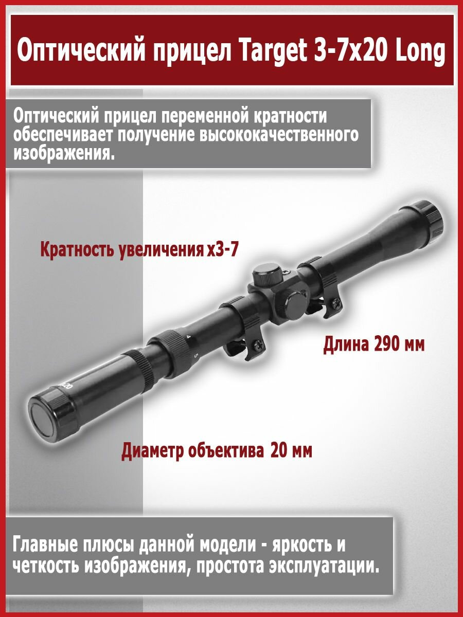 Купить Оптический прицел Target 3-7×20 Long с доставкой по всей России. Оптический прицел Target 3-7×20 Long: сравнение цен, характеристики, фото, актуальное наличие и цены.