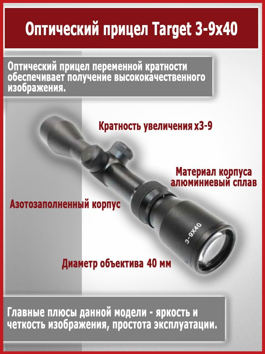 Купить Оптический прицел Target 3-9×40 (кольца в комплекте, Ласточкин хвост 11 мм) с доставкой по всей России.