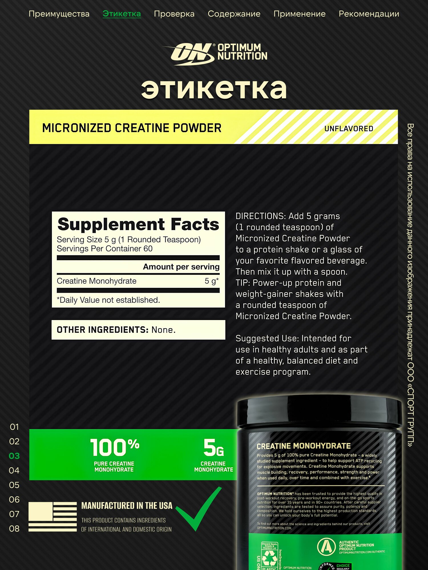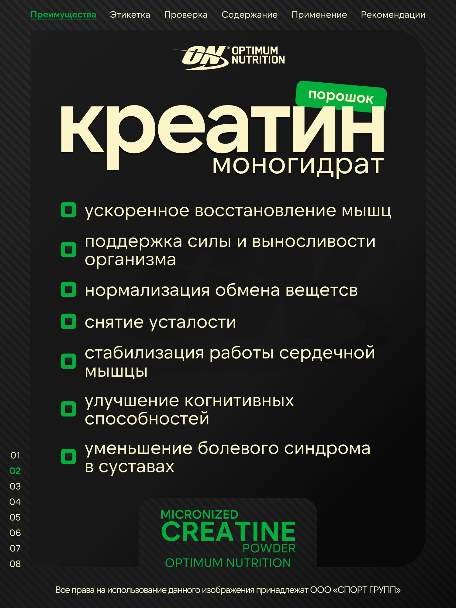 | Дополнительная информация | мгновенно усваивающийся моногидрат креатина. |