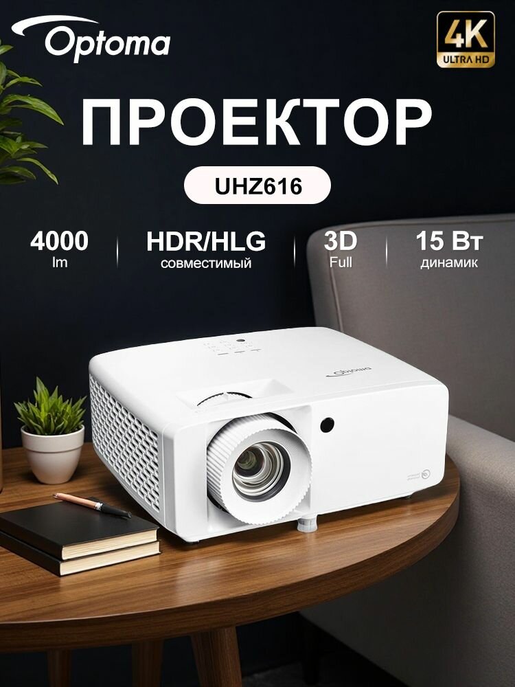 Купить Optoma UHZ616 Laser 4K Ultra HD проектор 4000 люменов Домашний 3D кинотеатр с доставкой по всей России.