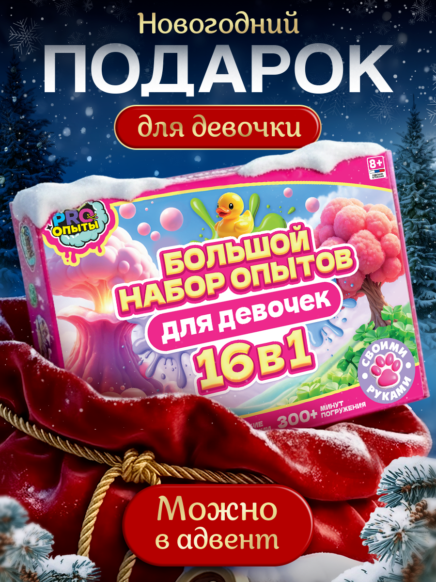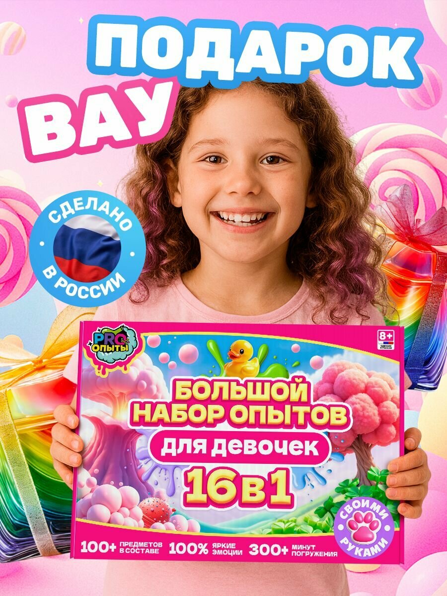 Купить Опыты и эксперименты для детей 16в1 PRO опыты: подарок девочке 5,6,7,8 лет. Набор опытов для девочек на новый год с доставкой по всей России.