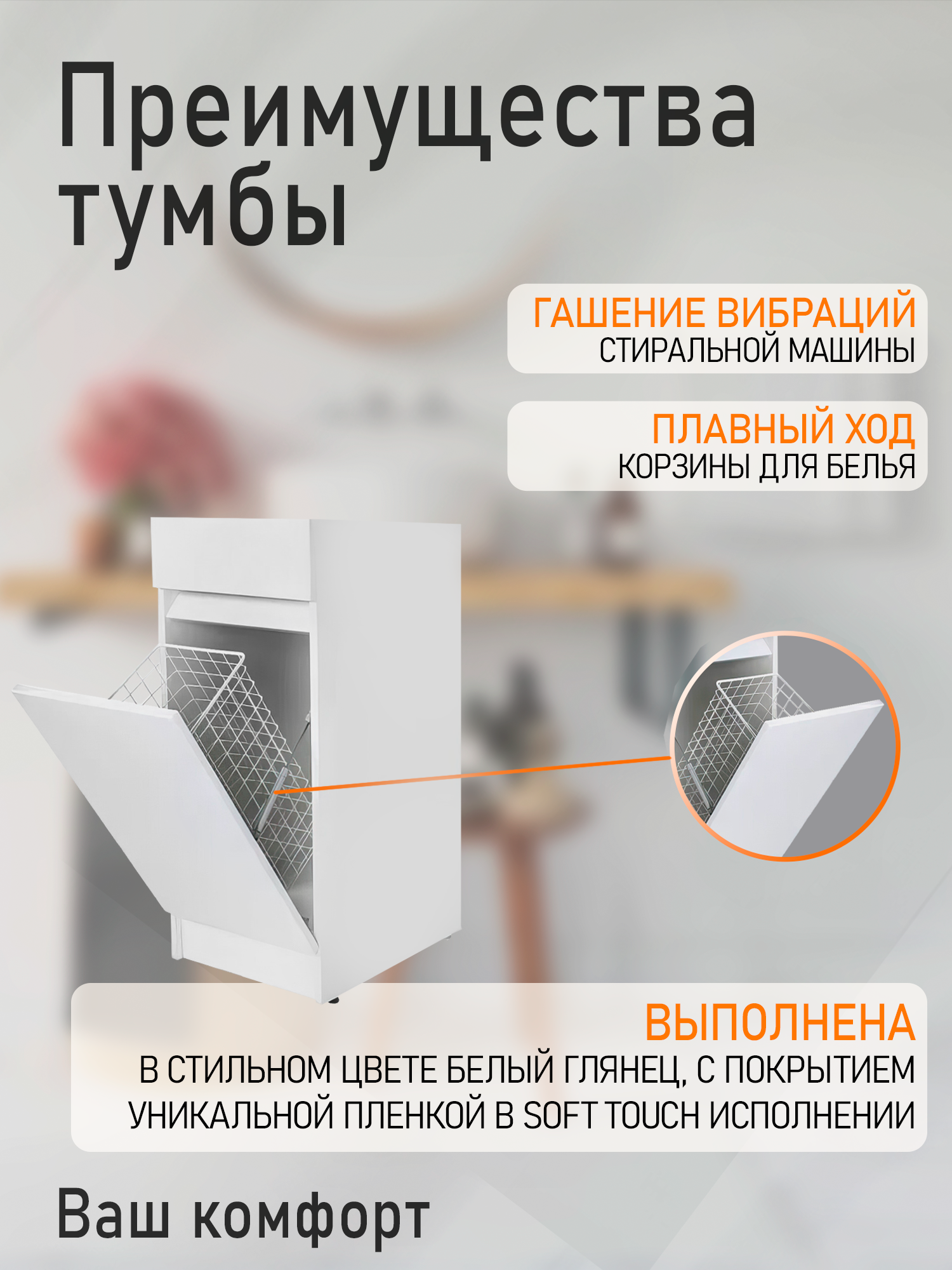 глянцевая поверхность, модульная конструкция, ножки, с доводчиками, с корзиной для белья