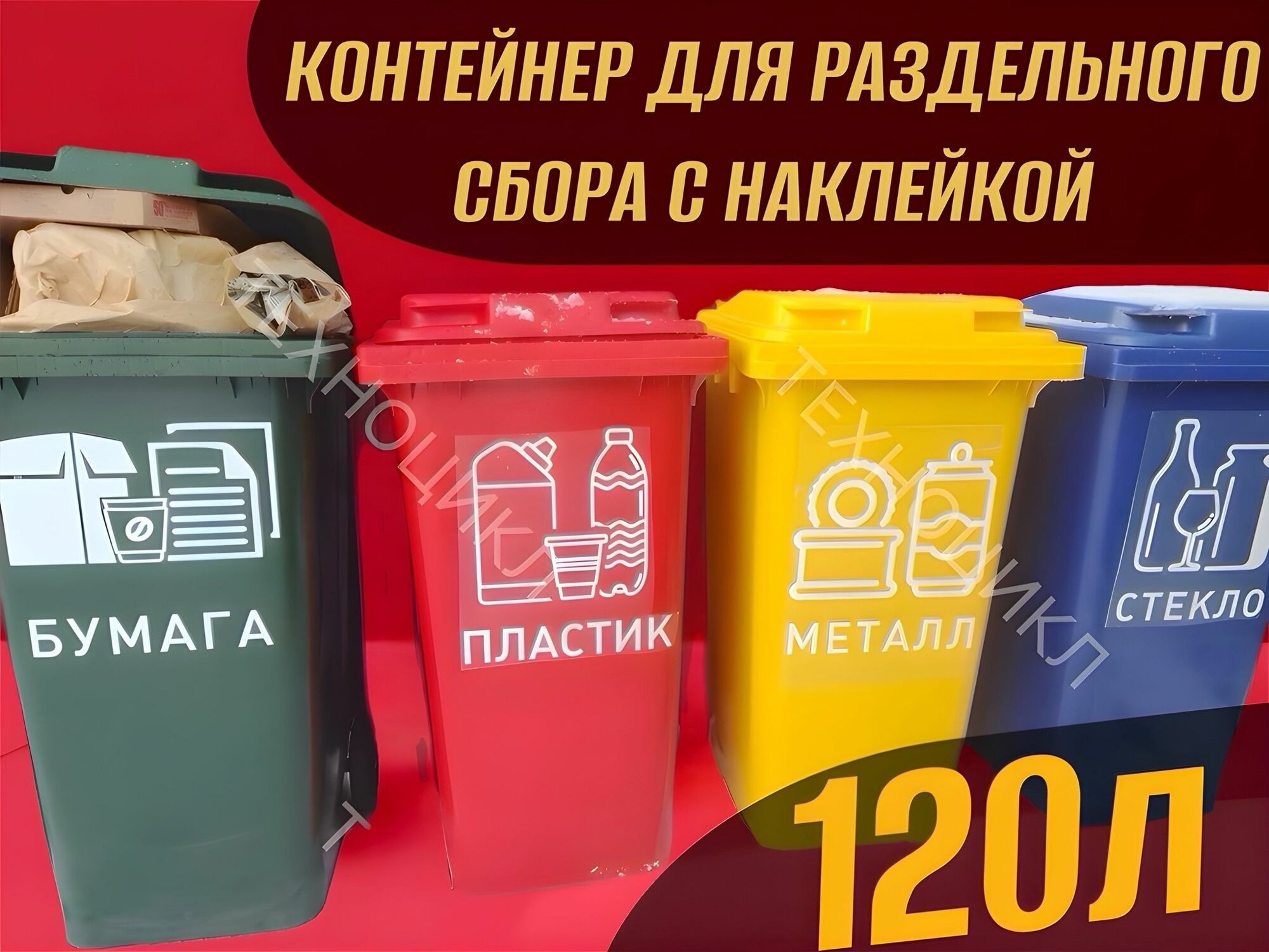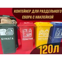 наклейка согласно описанию металл. Бак для РСО мусорный бак объемом 120 литров предназначен для раздельного сбора отходов и доступен в различных цветах с соответствующими наклейками, обозначающими тип отходов. Это делает его удобным и эффективным инструментом для сортировки мусора. Цвет и надпись: На выбор (согласно типу отходов)