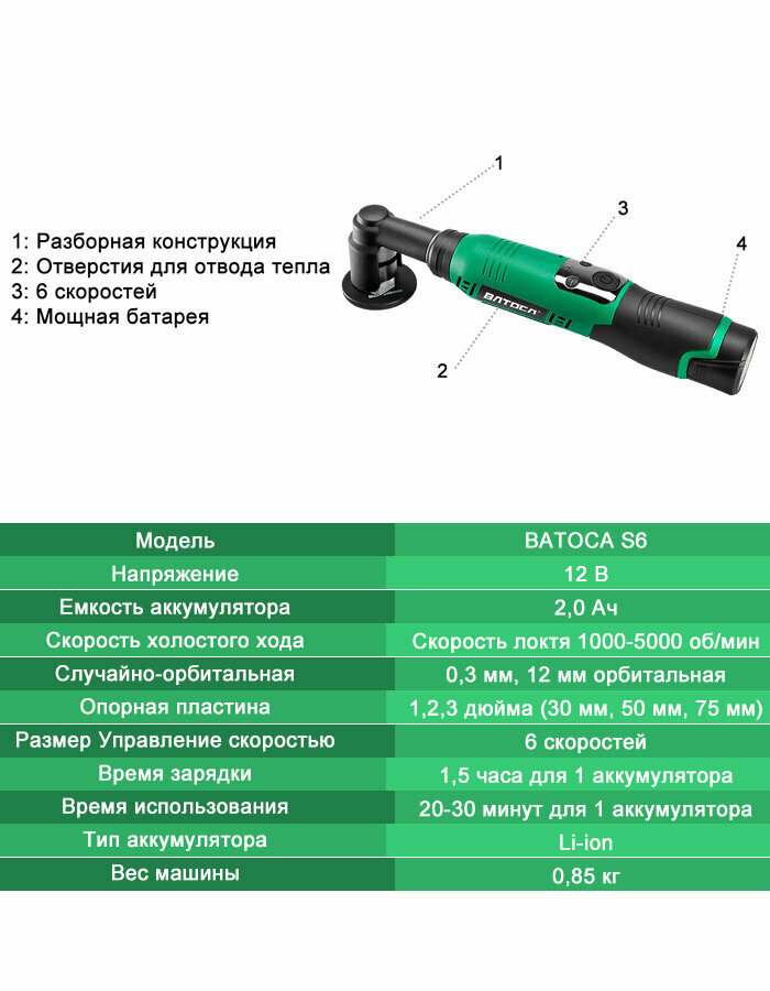 Купить Орбитальная полировальная машина аккумуляторная BATOCA S6 с доставкой по всей России. Орбитальная полировальная машина аккумуляторная BATOCA S6: сравнение цен, характеристики, фото, актуальное наличие и цены.