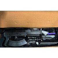 | Комплектация | - автомат; - аккумулятор; - зарядка (USB); - 500 орбиз шаров, -защитные очки; -глушитель; -лазерный прицел |