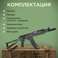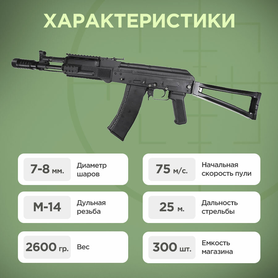 Чтобы подготовить автомат к игре поместите заряженный аккумулятор в автомат и подключите питание. Заранее выращенные шары орбиз засыпьте в съемный магазин. Вставьте магазин в автомат и переведите переводчик огня в положение "автоматический". и передернете затвор Характеристики: Возрастная категория, лет 10+ Калибр шаров, мм. 7-8 Скорострельность, выстр./мин. 500 Скорость гидрошара, м/сек 60 Аккумулятор, V 11,1V Вес коробки, гр. 4000 Вес модели, гр. 2600 Емкость магазина, шт. 300 Максимальная дальность, м. 30 Материал изготовления нейлон(полимер)металл Параметры резьбы (для дульной насадки) М -14 Подача шаров снизу Прицельная дальность, м. 25 Размер коробки, см. 75*35*8 Размер модели, см. 85*26*8 Режимы огня одиночный, автоматический Стволик гирбокса Металл Тип магазина электрический Цвет черный Шестеренки Нейлон(полимер)