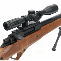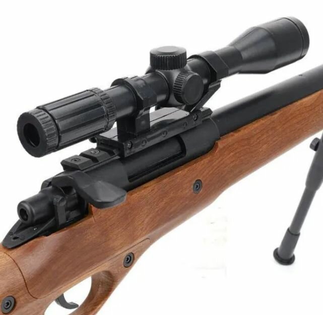 Детская винтовка Swift Hawk 702 в стандартной расцветке с механическом затвором, кратной оптикой (стоят обычные линзы). Стреляет данная модель гидрогелевыми пульками орбиз 7-8 мм. Съёмный магазин для пуль, съёмный оптический прицел. Стреляет до 20-25 метров. Размер винтовки 92см.