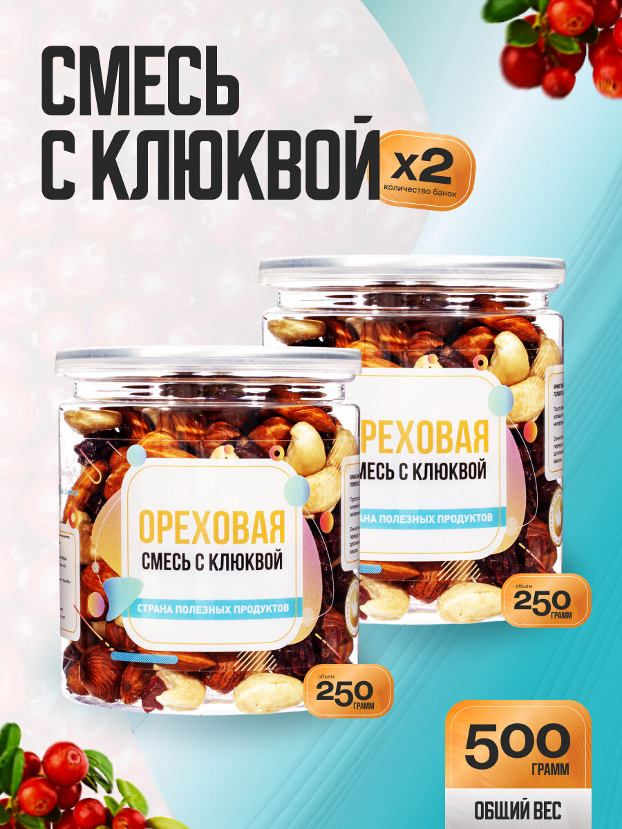 Ореховая смесь с клюквой 500 гр (2 банки по 250 гр), Страна Полезных Продуктов: сравнение цен, характеристики, фото, актуальное наличие и цены.