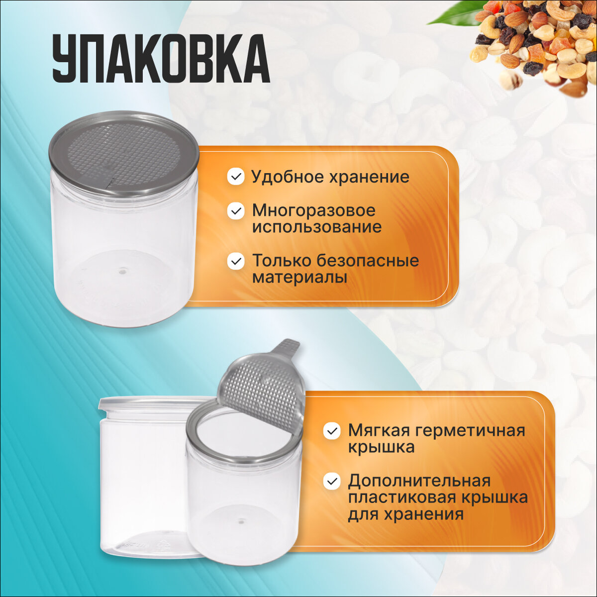 — Смесь жареных орехов с цукатами в трех стильных банках по 500 грамм. — Пряно-сладкое сочетание арахиса, миндаля, фундука и кешью с кусочками тропических фруктов, сваренных в сахарном сиропе. — Порадуй себя только отборным орехом в удобной, стильной баночке, которую так приятно держать в руках или поставить на рабочий стол в офисе. Коллеги будут в восторге! — Удобная упаковка в банке Easy Open! Алюминиевая крышка обеспечивает герметичность и сохраняет аромат ореха. Пластиковая крышка для удобного хранения после вскрытия. — Яркие эмоции от здорового перекуса Вам обеспечены!