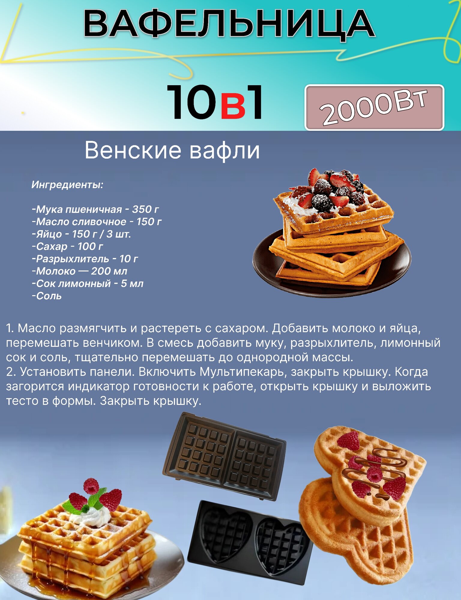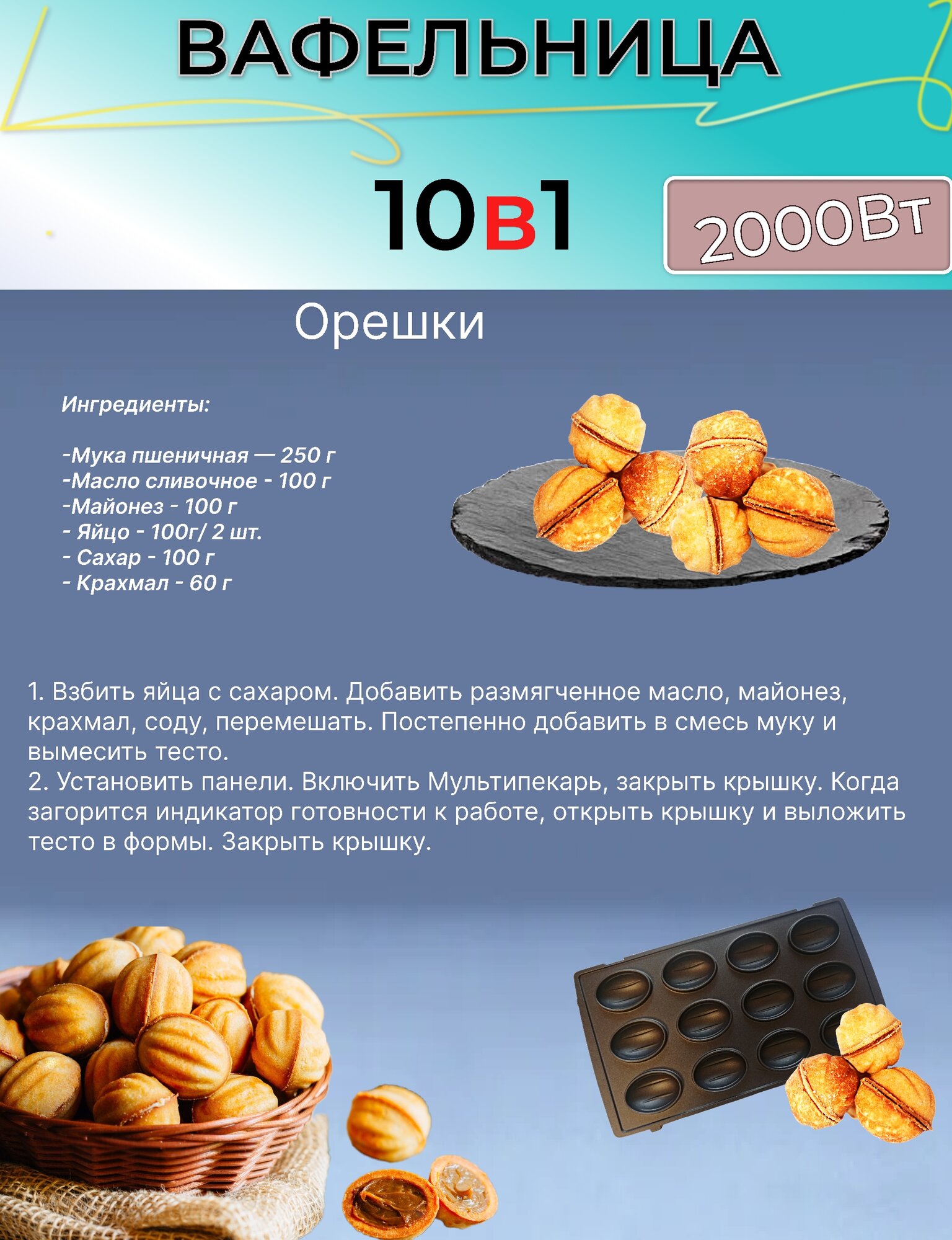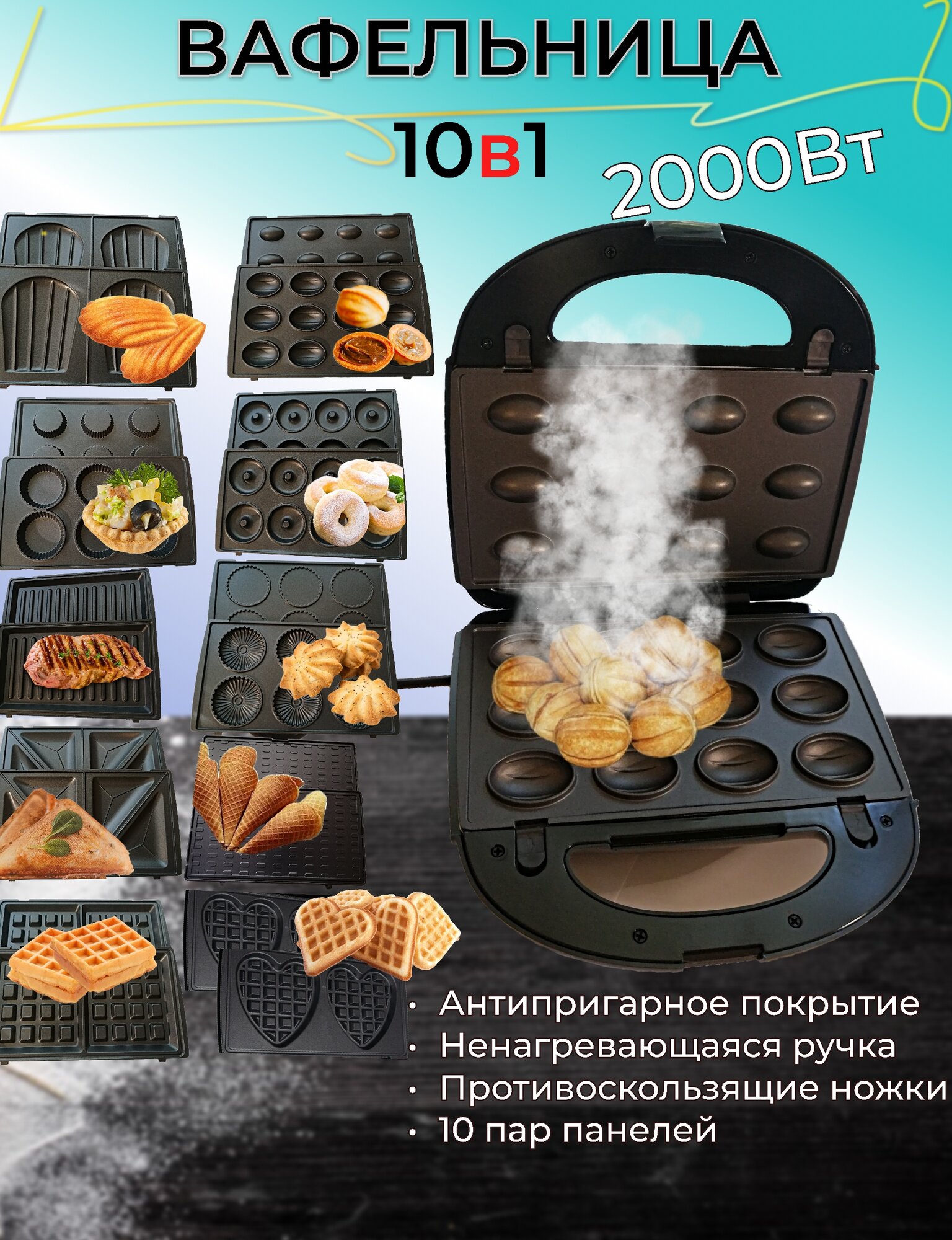 Купить Орешница электрическая, мультипекарь 10в1, 2000Вт, сменные панели с антипригарным покрытием с доставкой по всей России.