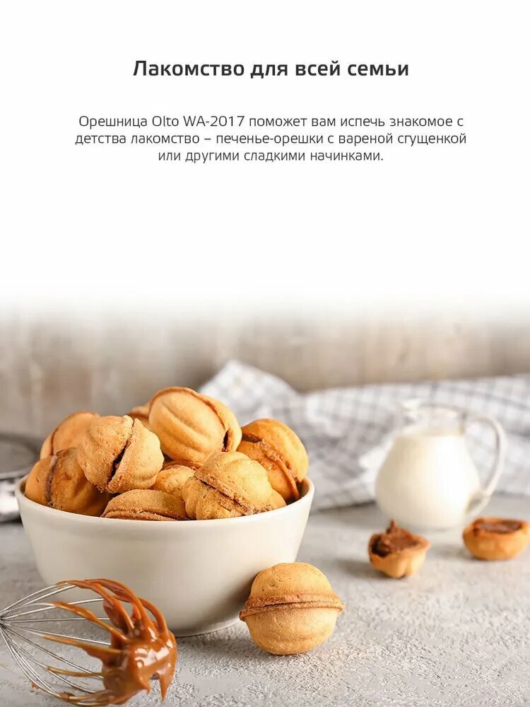 Купить Орешница электрическая Olto WA-2017, антипригарное покрытие, подарок женщине, черный с доставкой по всей России.