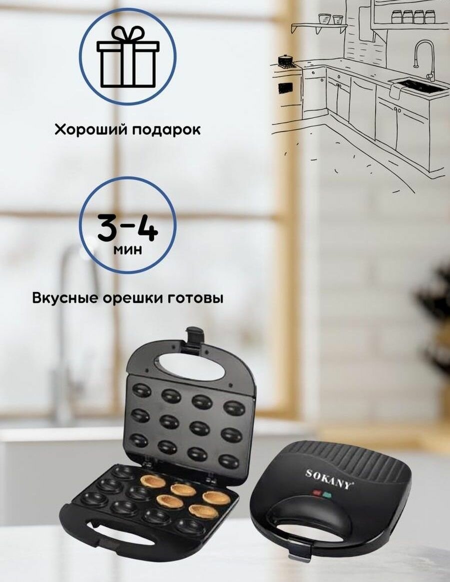 Орешница электрическая «Sokany» / Для выпекания вафельных орешков / С антипригарным покрытием / 750Вт.: сравнение цен, характеристики, фото, актуальное наличие и цены.