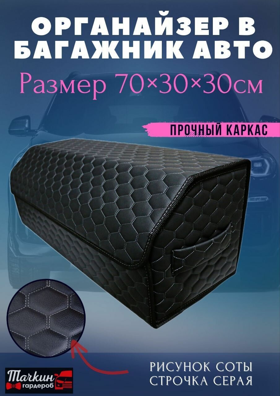 Органайзер автомобильный в багажник машины, 70*30*30 см, рисунок соты черные/ строчка серая / окантовка чёрная.: сравнение цен, характеристики, фото, актуальное наличие и цены.