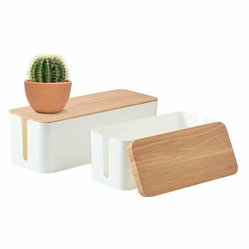 Органайзер для проводов Cactus это отличный способ организовать безопасное и простое хранение кабелей, проводов или сетевых фильтров. Бокс для проводов предотвратит скопление пыли, не даст запутаться проводам, значительно упростит уборку. Корпус бокса выполнен из ударопрочного полистирола, а крышка из бамбука. В нашем ассортименте бокс для организации проводов представлен в двух цветах: черный и белый с крышкой из самого настоящего бамбука. Мы заранее позаботились о том, чтобы пользователям было удобно делать свой выбор: размер бокса Cactus подходит для самого распространенного удлинителя на 3 или 4 розетки. Органайзер для проводов Cactus не только сделает хранение более эстетичным. Вы можете перестать волноваться за детей или домашних питомцев: источник электричества будет надежно скрыт от нежелательного воздействия. Кроме того, бокс служит дополнительной защитой для компьютерных аксессуаров от повреждений, увеличивая срок их эксплуатации. Если Вам приходится перемещать свой компьютер и другие устройства, то бокс для кабелей Cactus станет надежным подспорьем. Вы сможете легко и быстро передвинуть все свои устройства, не теряя при этом кабели и прочие аксессуары.