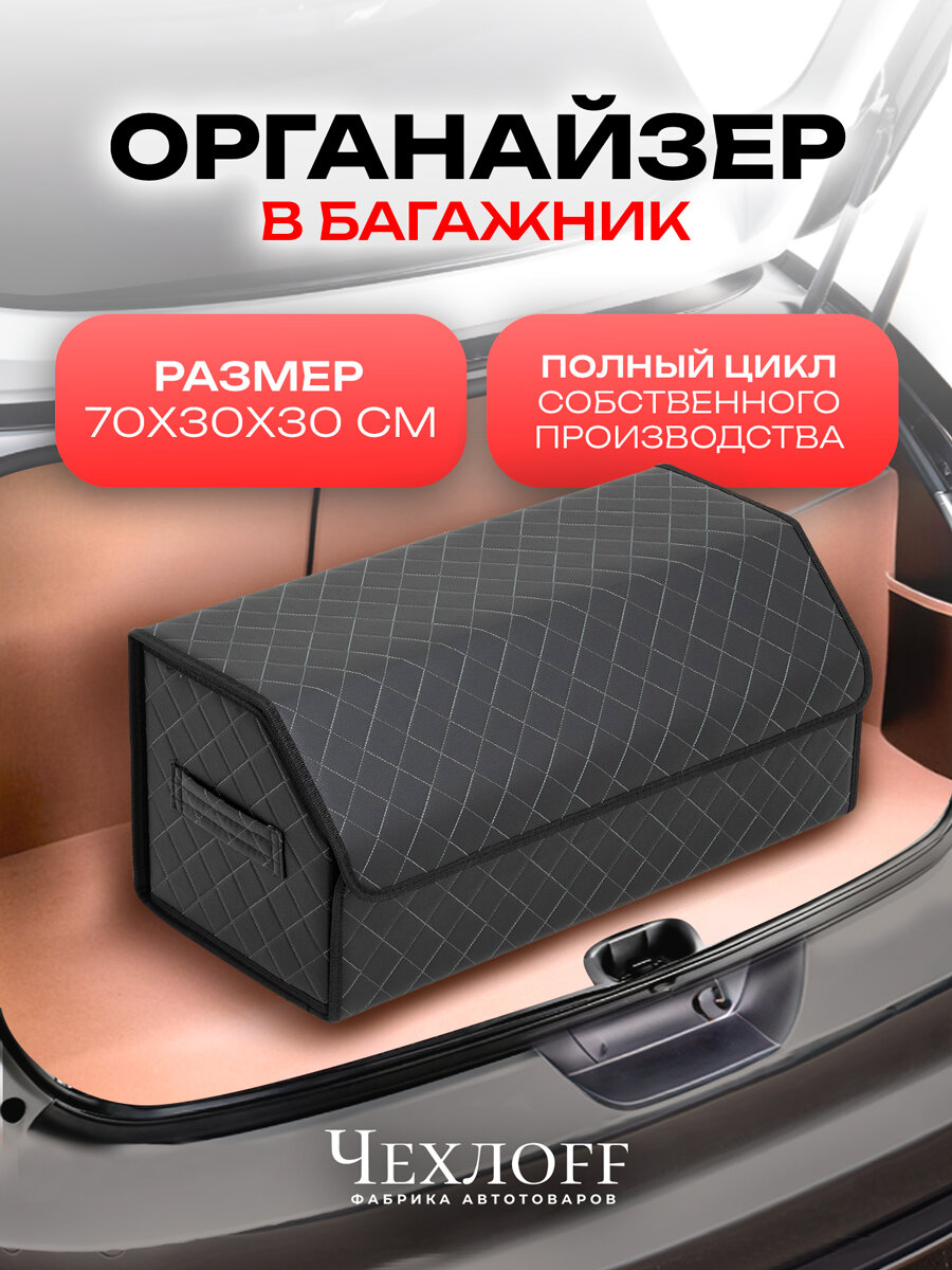 Органайзер ЧехлоFF, для багажника автомобиля, ЭКО кожа, влагостойкий, с ручками, черный с белой строчкой: сравнение цен, характеристики, фото, актуальное наличие и цены.