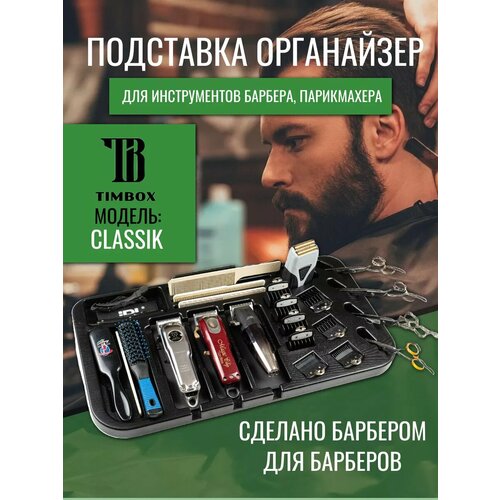 TIMBOX CLASSIK - Создано Барбером для Барберов. TIMBOX CLASSIK - Идеальный помощник для профессиональных барберов, парикмахеров и стилистов. Уникальная конструкция из массива ясеня, покрытая несколькими слоями высококачественного итальянского масла, обеспечивает долговечность и эстетичность изделия. Вмещает до 3 проводных или беспроводных машинок, 4 ножницы любого размера и 4 стоячие расчески для удобного использования. Благодаря 2 отсекам, специально разработанным для шейверов компании Andis, Wahl, Babyliss или микробритвы, вы сможете легко хранить свои профессиональные инструменты в одном месте. Комплект также включает насадки Wahl или JRL, такие же известные фены, как Dyson или JRL, которые можно дополнительно приобрести вместе с силиконовой вставкой. Отдельные отсеки предусмотрены для зажимов, лезвий, бритв, счеток для фейда и всех других необходимых инструментов BARBER. Комплектация включает: 1) 3 двусторонних подкладок из специального материала, которые легко промываются под проточной водой. 2) 4 силиконовые противоскользящие ножки для устойчивой фиксации. 3) 4 силиконовые вставки для удобного расчесывания и брашинга. Наша продукция и все ее компоненты разработаны и изготовлены в России нашей собственной производственной линии - это настоящая ручная работа. Упаковка продукта осуществляется в качественный пенопласт и гофрокартон для максимальной защиты. Габаритные размеры: 57см x30 см x3,5 см. Подставка для барбера, органайзер для барбера, доска барбера - все это можно найти в нашем TIMBOX CLASSIK.