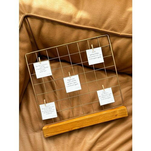 - Мудборд или доска настроения - стильный элемент интерьера и очень функциональная вещь!- Служит отличной основой для карты желаний.- Прикрепите к доске фотографии ваших близких, вырезки из журналов, любимые цитаты, наброски, удачные идеи - словом, все то, что каждый день дарит вам хорошее настроение и заряжает работоспособностью.- Такой аксессуар подарит Вам вдохновение, а вашей комнате придаст неповторимый стиль.- Крашеная металлическая сетка, на обработанной и покрытой лаком деревянной подставке. Размер 35х35 см. Органайзер решетка. Доска для заметок. Органайзер настенный.