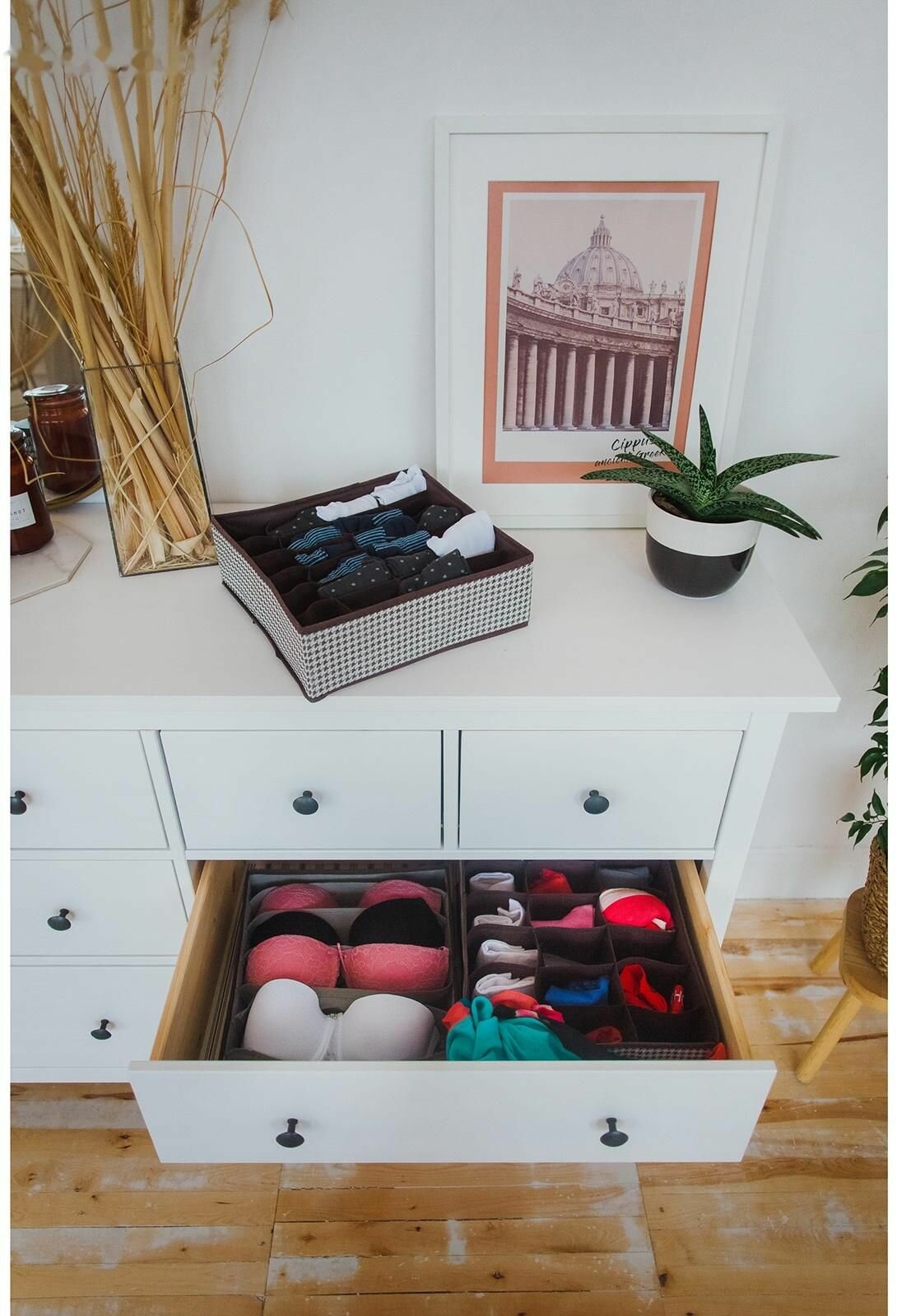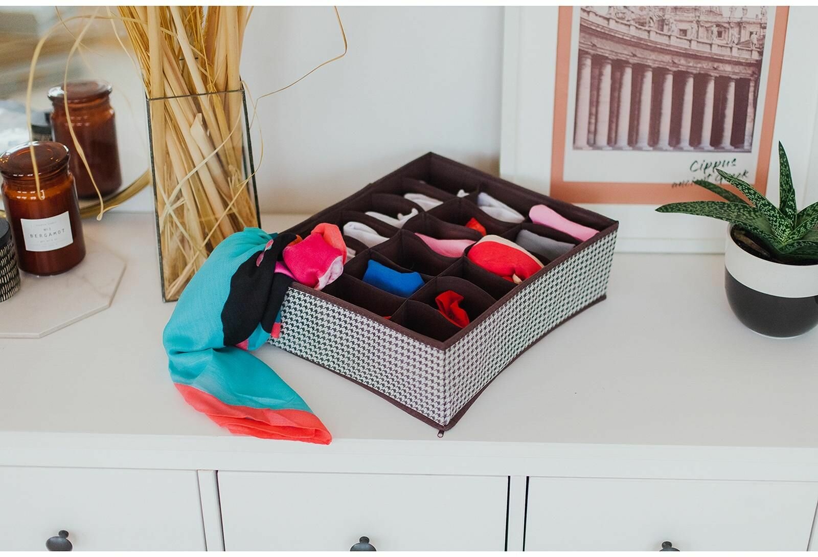 Органайзер для хранения белья 18 отделений, 35 30 12 см, цвет бело-коричневый: сравнение цен, характеристики, фото, актуальное наличие и цены.