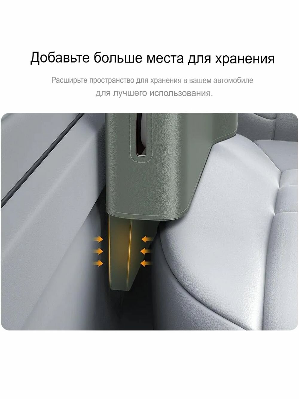Органайзер имеет большую вместимость и разделительное хранение, что позволяет вам удобно размещать в нем различные предметы, такие как бутылка с водой, телефон и т. д. Одной из особенностей модели является его идеальная посадка. Идеально вписывается в промежуток между сиденьем и центральной консолью, обеспечивая дополнительное пространство для хранения прямо рядом с вами. Это помогает предотвратить падение вещей через зазор между сиденьями автомобиля.