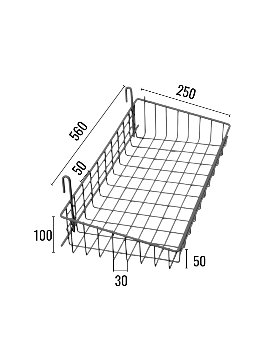 Скошенный передний бортик корзины не только придаёт ей современный вид, но и обеспечивает удобный доступ к товарам. Высота задней стенки в 100 мм и передней – 50 мм позволяет легко видеть и извлекать товары, не создавая препятствий для клиентов. Это особенно важно в торговых точках с высоким трафиком, где каждая секунда на счету.
