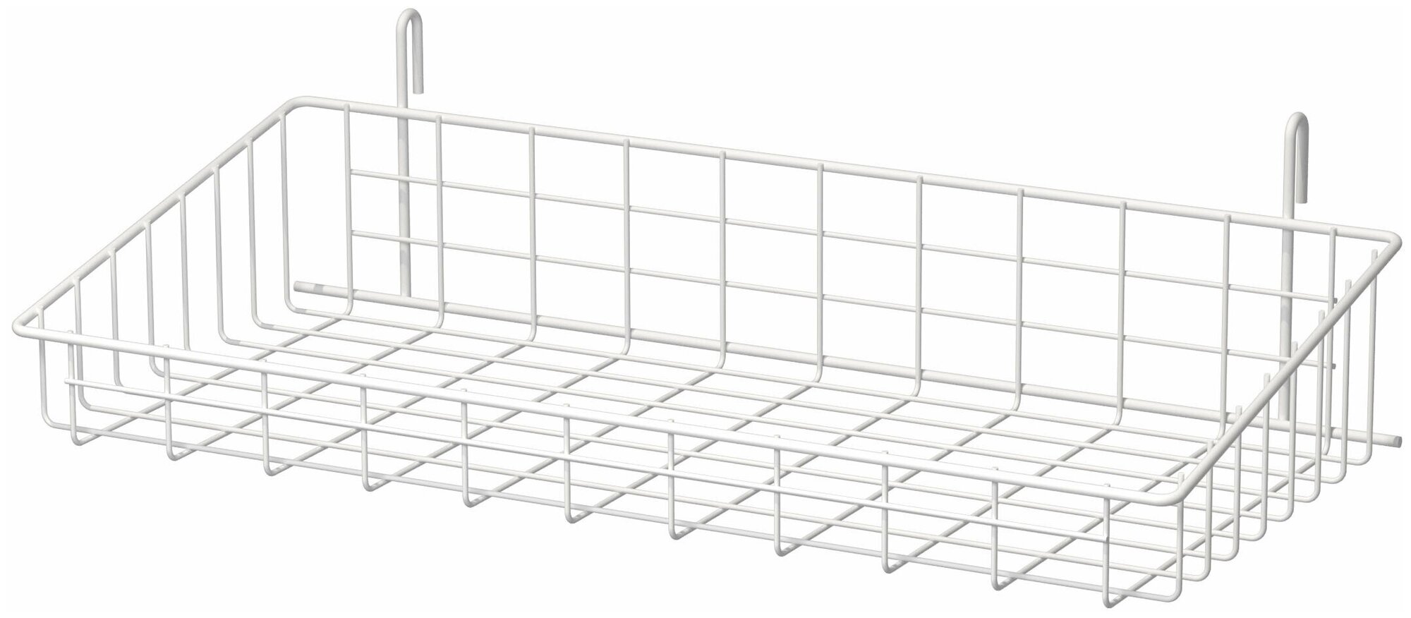 Корзина, разработанная с учетом удобства и практичности, станет незаменимым помощником в любом магазине. Ее конструкция позволяет легко и надежно закрепить корзину на зацепах к сетке, что обеспечивает стабильность и безопасность при использовании. Расстояние между крючками в 450 мм оптимально подходит для большинства стандартных сеточных систем, что делает установку быстрой и простой.