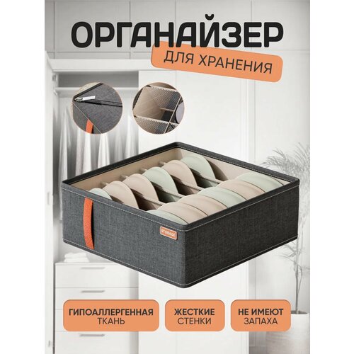 Органайзер для бюстгальтеров, шарфов, лосин и детских вещей, имеет 6 ячеек размером 31,5х5см.