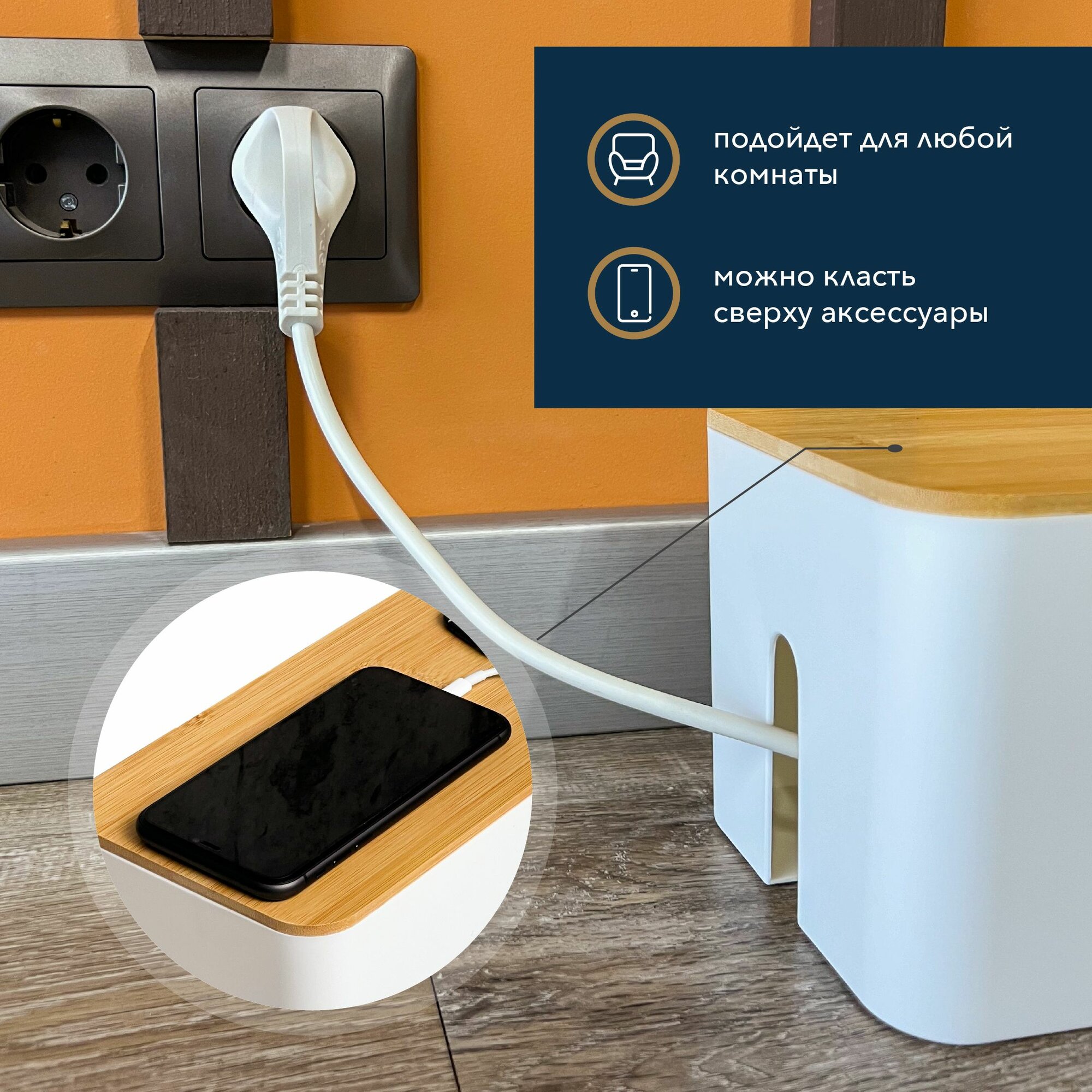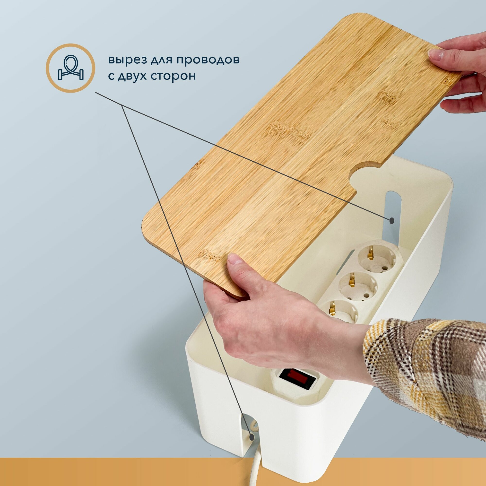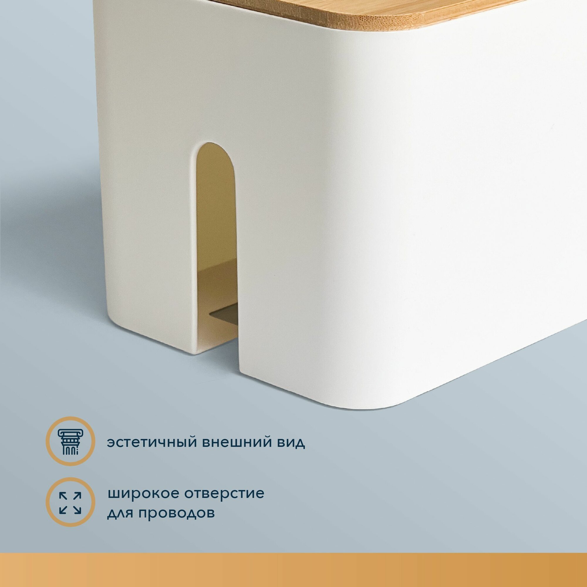Купить Органайзер для хранения проводов и зарядок Birdhouse, белый с бамбуковой крышкой с доставкой по всей России.