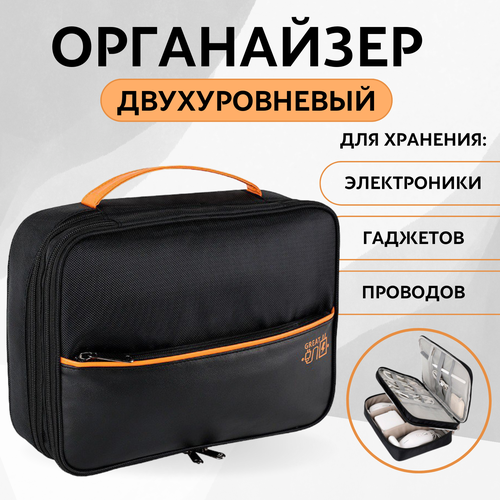 Преимущества органайзера: - Двухъярусное расположение позволяет хранить гаджеты и зарядки отдельно, что значительно упрощает поиск нужного устройства. - Перегородки на липучке можно менять по своему усмотрению. - Компактные размеры позволяют взять органайзер с собой в любое место, где требуется организовать рабочее пространство. - Высококачественные материалы обеспечивают долговечность и надежность аксессуара. - Продуманная конструкция органайзера позволяет удобно использовать его на рабочем столе или на полке. - Имеет ручку для переноски. - Много отсеков для деталей. - Водоотталкивающая ткань. - Дополнительное отделение на молнии спереди сумки.