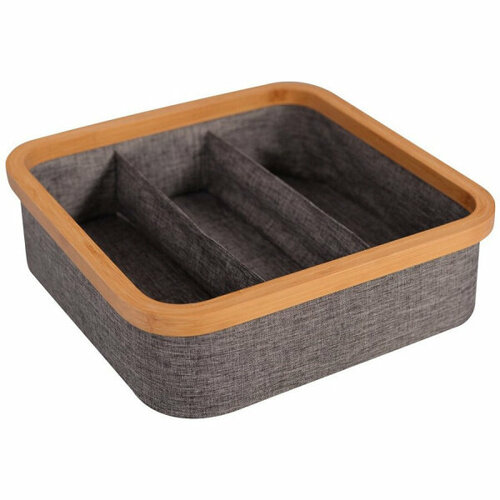 Органайзер для хранения вещей. Размер 30х30х9 см NEW Предназначен для хранения малогабаритных вещей, таких как чулочно-носочные изделия, нижнее белье, изделия для рукоделия, кухонные принадлежности, косметика, ремни, а также других предметов домашнего обихода и аксессуаров. Органайзер поможет организовать пространство. Положите его в выдвижной ящик шкафа, комода, тумбы или поставьте на полку или стол и нужные предметы всегда будут под рукой. Наличие трех отделений позволит содержать нужные мелочи в порядке. Состав: 100% полиэстер, бамбук. Размер 30х30х9 см.