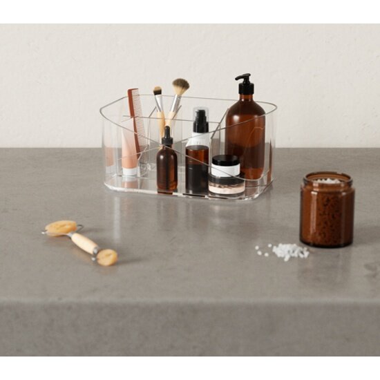 Упорядочите пространство в ванной или спальне с органайзером Glam! Этот стильный органайзер для макияжа вместит все необходимые средства благодаря разнообразным отделениям и съемной вставке.