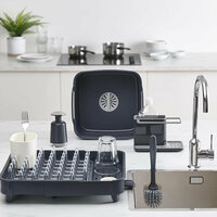- Перекладина для подвешивания влажных кухонных тряпок и подставка для хранения губки.