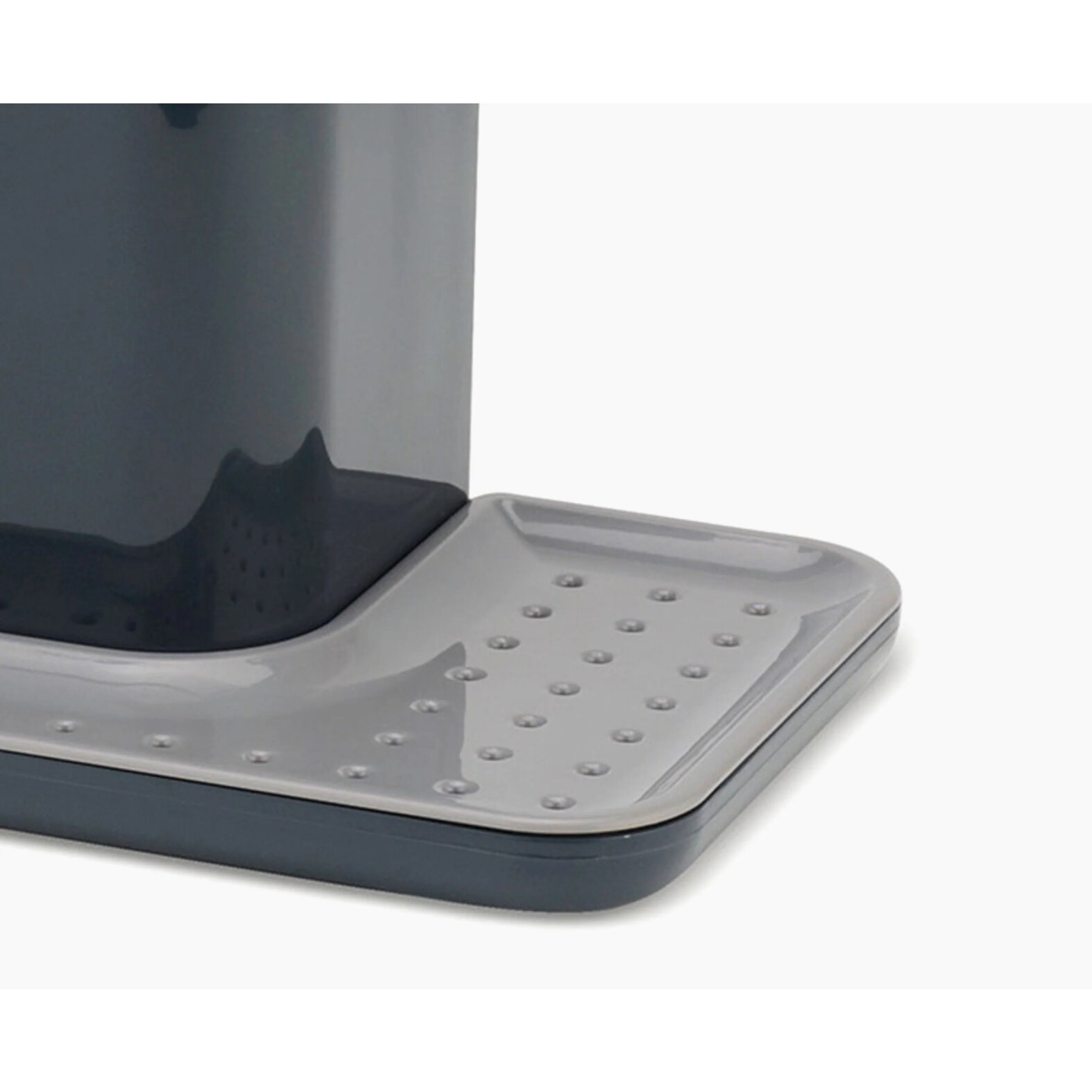 В этом органайзере достаточно места для хранения всех необходимых предметов для мытья посуды и уборки возле раковины: в основном отделении поместится бутылка с моющим средством и щетка, а на перекладине можно развешивать и сушить влажные кухонные тряпки.